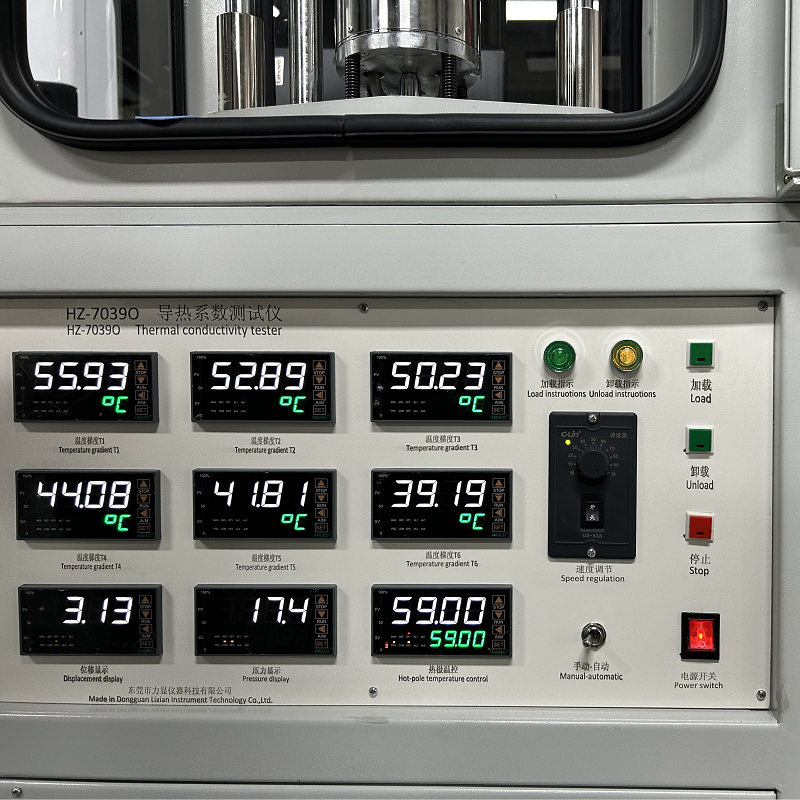 Thermal Conductivity Tester features: with automatic pressure, automatic thickness measuring device, and connected to the computer to realize automatic control.The instrument uses a 6-point temperature gradient detection to improve the test accuracy. Can detect the thermal resistance curve under different pressures, use the optimized mathematical model, can measure the material thermal conductivity and thermal resistance and contact thermal resistance at the interface and several parameters. Widely used in institutions of higher learning, scientific research units, quality inspection departments and production plants of material thermal conductivity analysis and testing